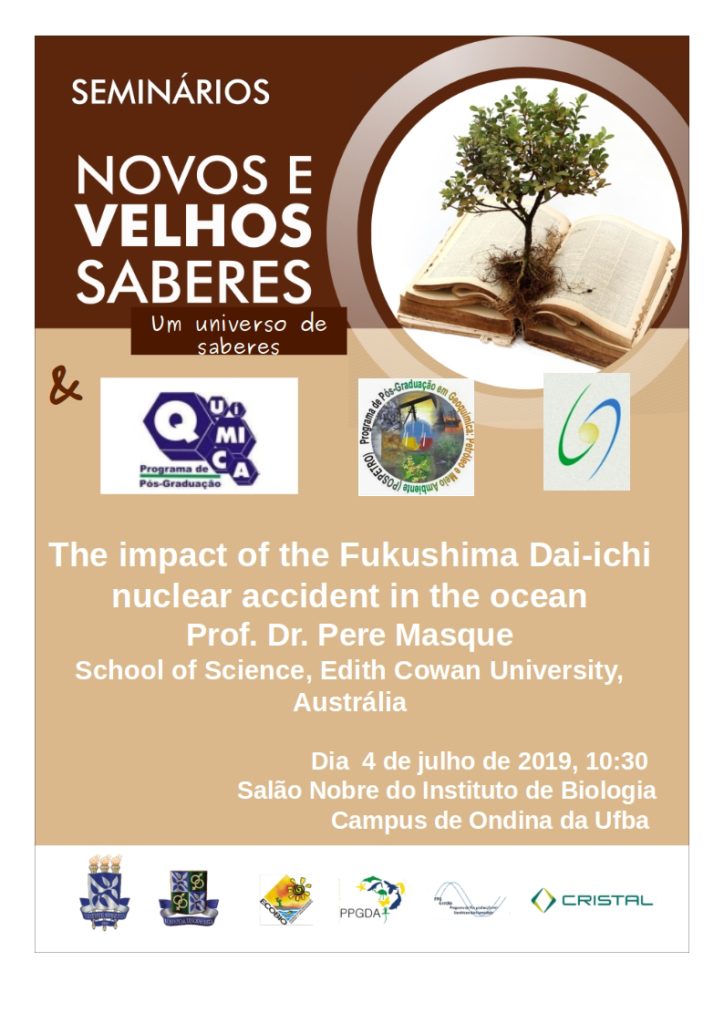 O Projeto SEImA-BTS convida a comunidade acadêmica e não acadêmica para a palestra do Prof. Dr. Pere Masqué, sobre o acidente de Fukushima e o trabalho que desenvolveu associado a isso. A palestra acontece no dia 04 de julho, às 10h30, no Salão Nobre do Instituto de Biologia da UFBA.